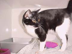 A kid volunteer is brushing a cat who looks an awful lot like Mackey. Wait a sec, that is Mackey. What the heck is he doing in here? He belongs to the vet downstairs and is always trying to break into the shelter. Apparently the kid let him in. Oops. Better get him out of here. The kid also let some of the new cats