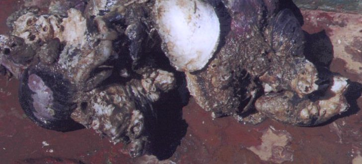 The mussels were often encrusted with barnacles and